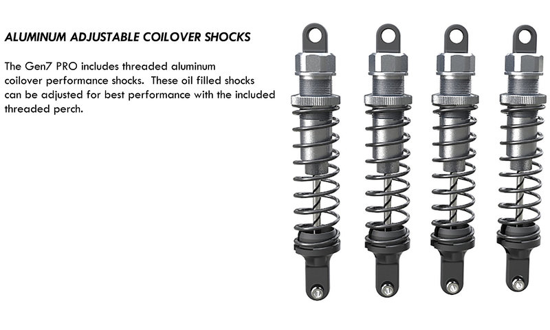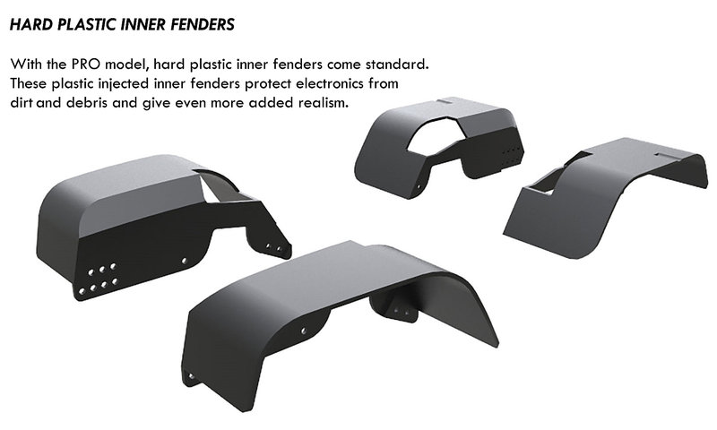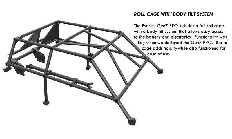 Podvozek Gen7 Pro. Oproti Gen7 je opatřen systémem odklápění karoserie, předními CVD osami, nastavitelnými hliníkovými tlumiči, vnějšími a vnitřními fendery, vnitřní ochrannou klecí a kovovými ochranami hrušek obou náprav (skid plate):